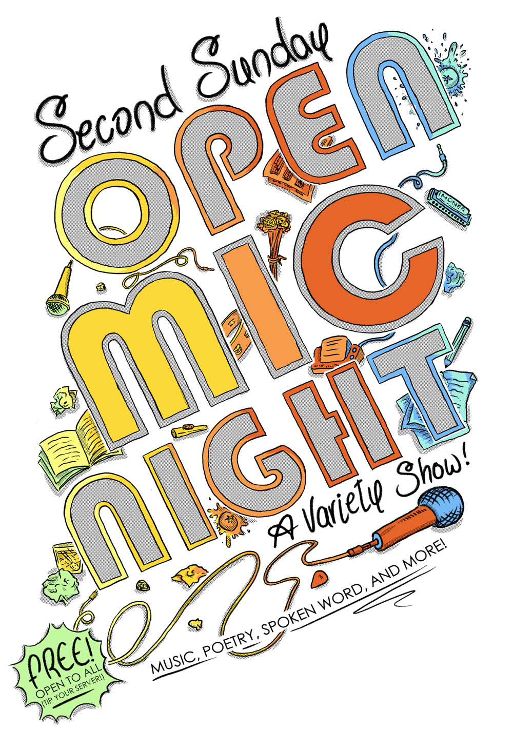 Sign up to perform using the link above, or just arrive a few minutes early to get on the list.